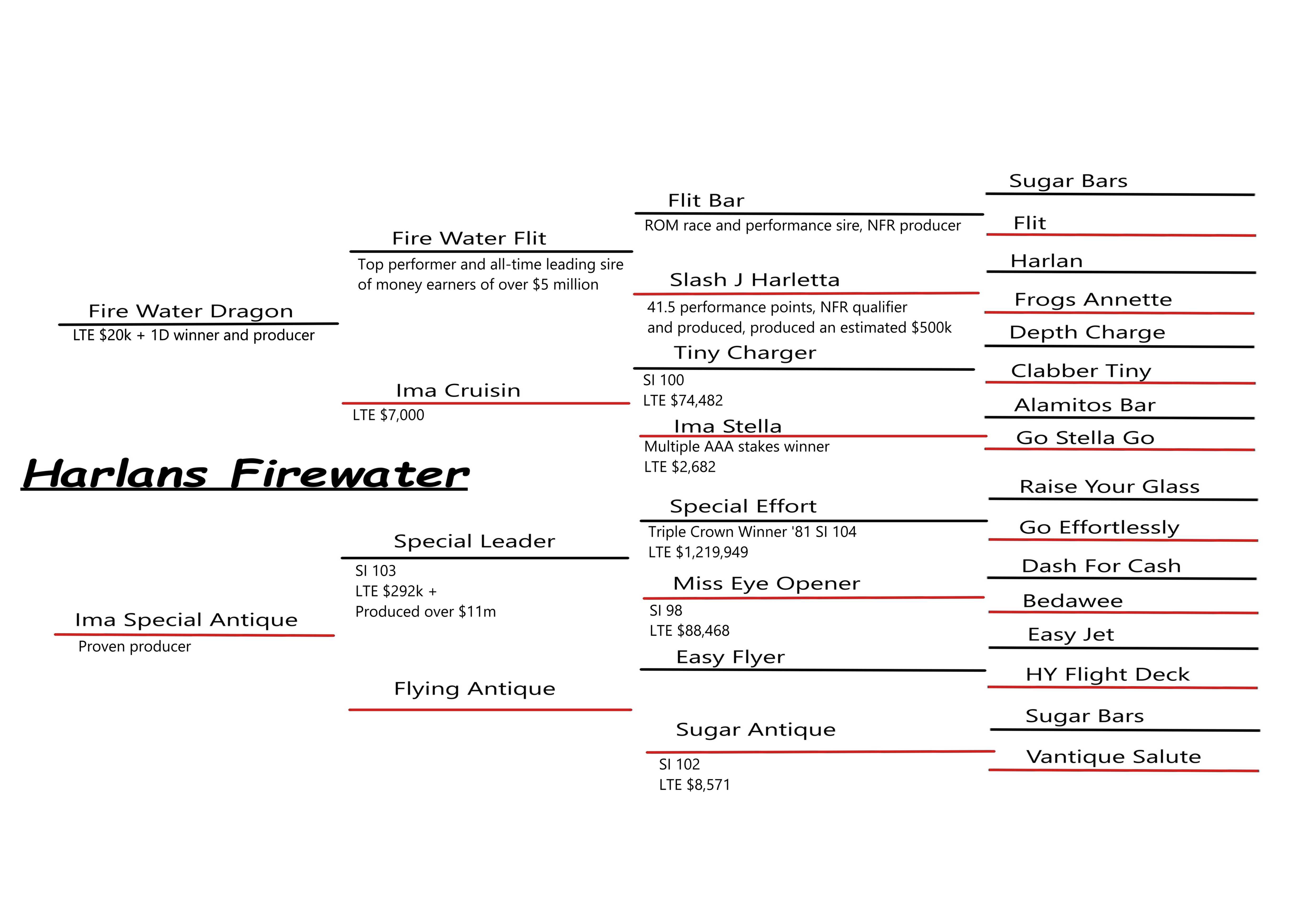 Harlans Firewater aka “Mac” is a 2019 sorrel stallion backed by powerful genetics. His pedigree speaks for itself with top winners and producers such as Fire Water Dragon (LTE $20k) Fire Water Flit (produced $5million+) Special Leader (LTE $292k+) and more amassing multiple millions in both LTE and prodigy earnings!